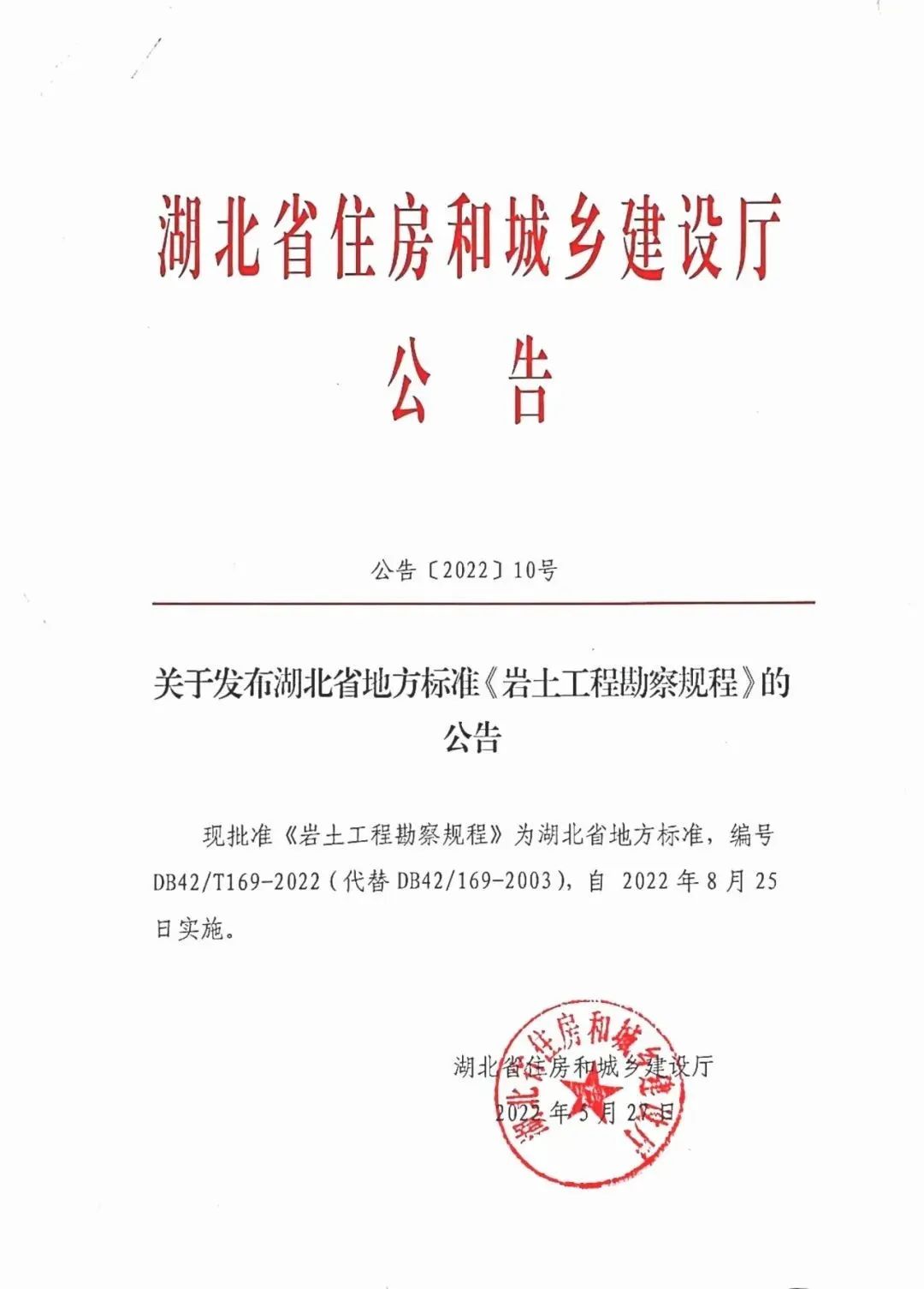 近期,湖北省住房和城鄉建設廳、湖北省市場監督管理局聯合發布了《巖土工程勘察規程》DB42/T 169-2022(以下簡稱《規程》),并將于2022年8月25日起正式實施。